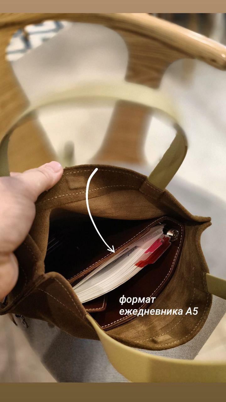 В пакет помещается наш ежедневник формата А5, объёмный очечник, бутылка воды 0.5л, кошелёк, ключи, документы, немного косметики.