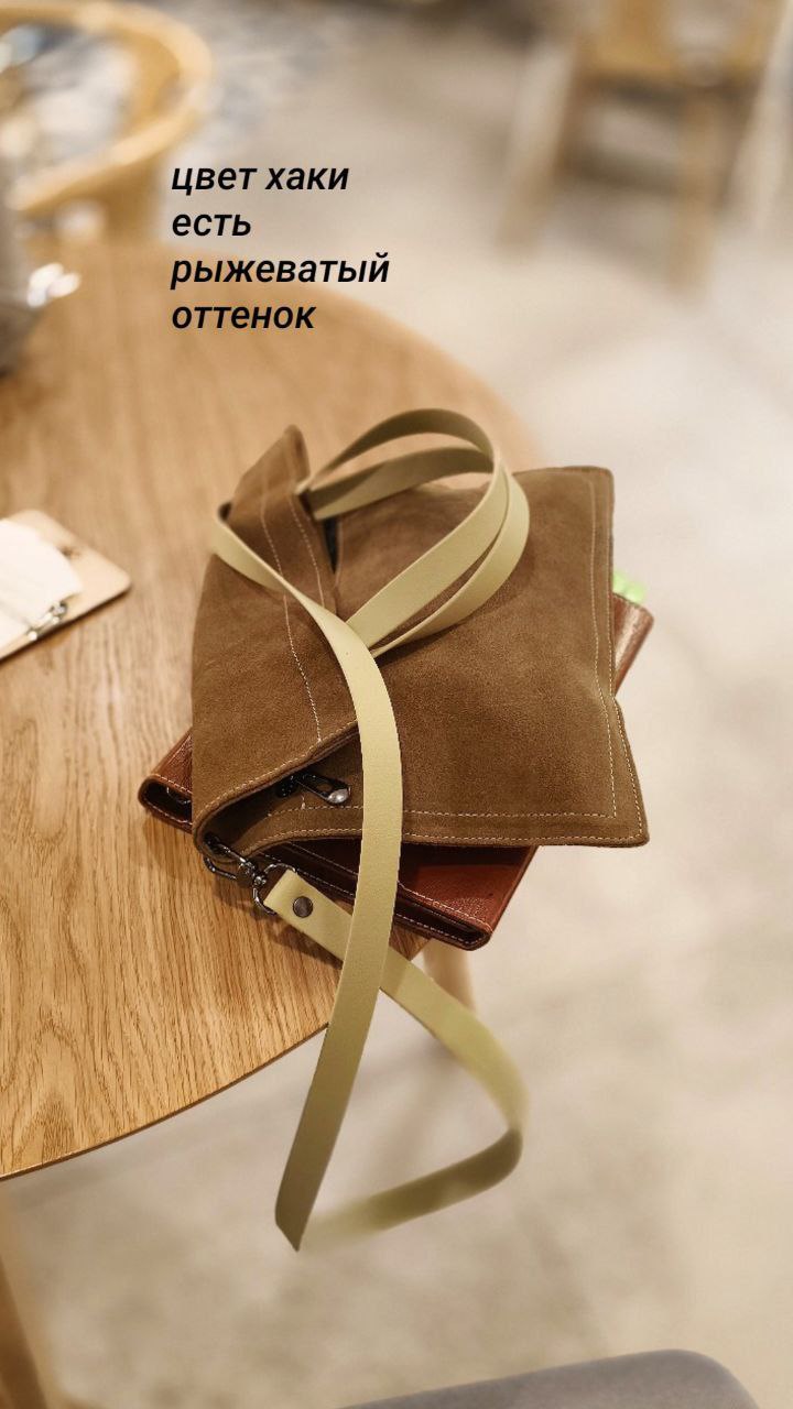 Материал: натуральная кожа -велюр цвета хаки с рыжиной, не линяет и не пачкает одежду.